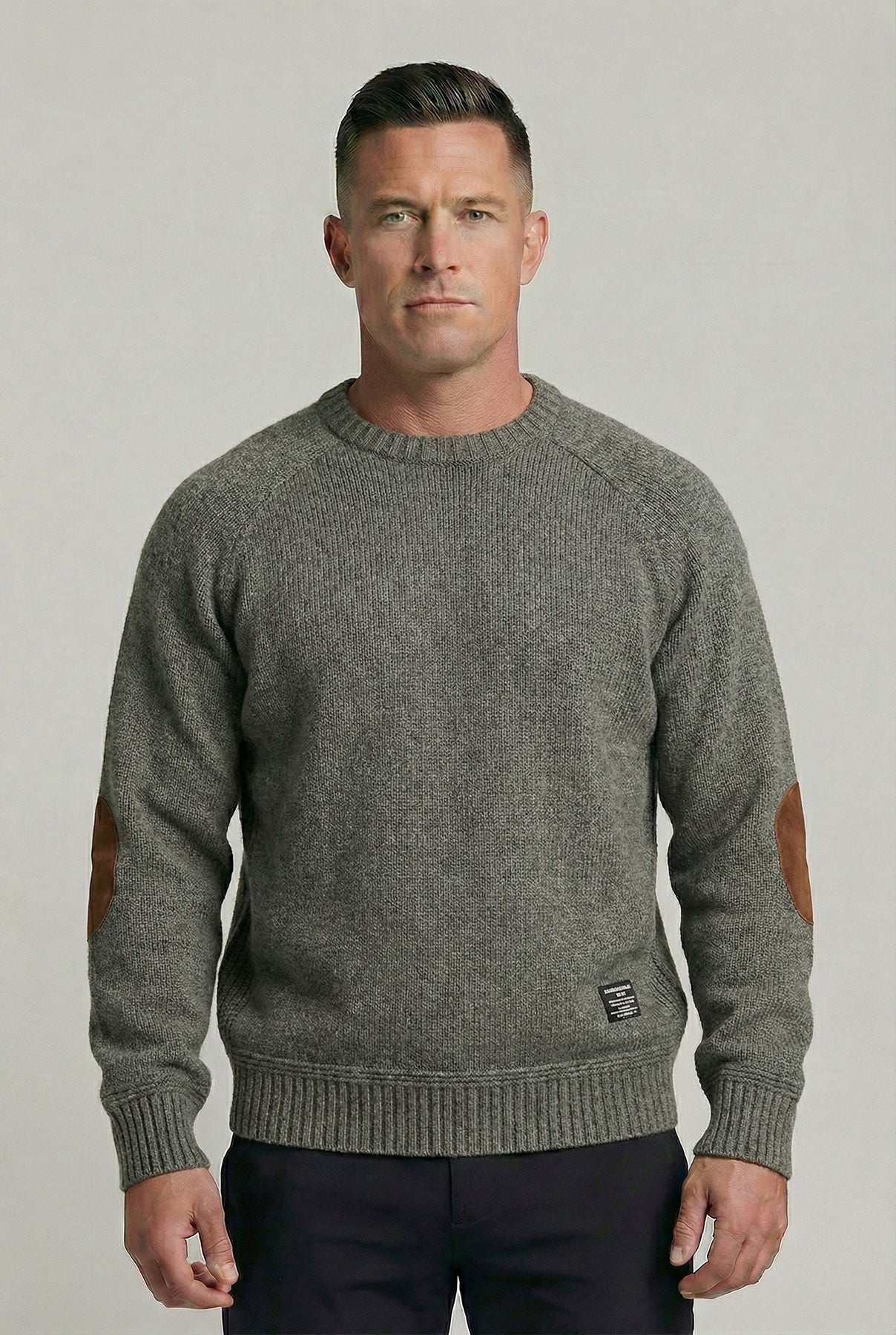 - Suede elbow patches
